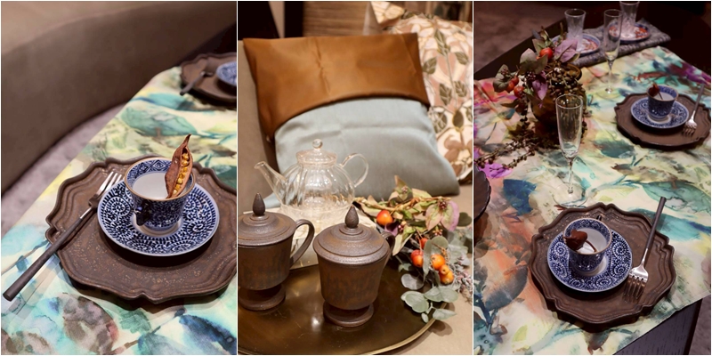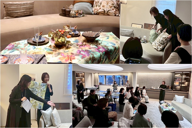 今回のイベントでは、ショールームの一部を食空間に見立て、人・空間・テーブルにトータルで色と柄を取り入れるファブリックコーディネーション&テーブルコーディネートのデモンストレーションを、FSPJ認定講師コーディネーターのYUMIKOERIKOが担当いたしました。