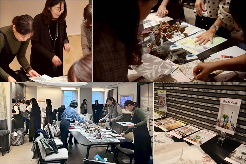 マナトレーディング様の取り扱うファブリックの中から一部をスタイル別に分類し、実際に色・柄・素材を自由に組み合わせ、自分だけのMYスタイル食空間を考えるファブリックコーディネーションのワークショップを開催いたしました。
