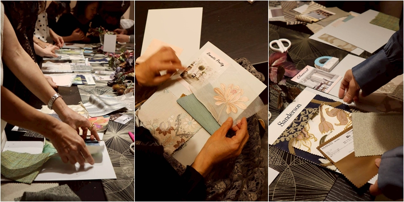 参加者の皆様から大変好評だったこちらのワークショップでは、実際の生地に触れていただきながら、カーテンに、クッションカバーに、テーブルクロスにと、どの生地を食空間のどこに使いたいかまでを想像していただきながらお楽しみいただきました。