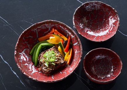 滋賀・信楽の窯元として1862年から続く文五郎窯は、奥田 章 / TSUBO-BUN 様へとブランド名を変更されました。伝統を受け継ぎながらモダンな器を生み出し、人気の十草シリーズのほか、今年は黒南蛮の注器や金彩の中国茶器など、和洋どちらの食卓にも映える作品を販売される予定です。