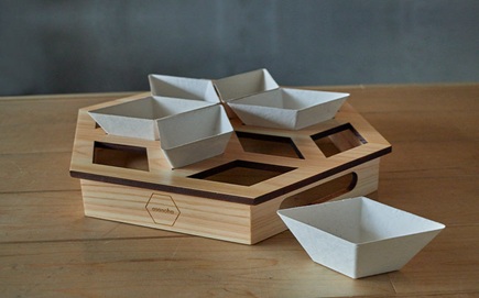 asanoha(アサノハ)様は、日本の伝統を現代に届けたいという思いから生まれた紙の器ブランドです。麻の葉模様に込められた願いや美意識をデザインに宿し、原料の一部に環境負荷の少ない麻を使用。ホテルやケータリングなど“おもてなし”の場にも選ばれています。TWFでは菱鉢、猪口、六角皿・六角鉢に加え、台座も美しい佇まいでご覧いただけます。