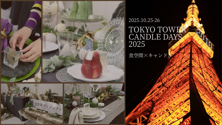 2025年10月24日~26日に東京タワーで開催されました「TOKYO TOWER CANDLE DAYS 2025」(日本キャンドル協会様主催)において、食空間プロジェクトは後援企業として参加し、キャンドルアワードのプレゼンターを始め、「キャンドル×食空間」のコラボレーション展示やスタイリング体験会を開催いたしました。